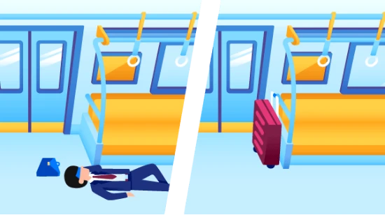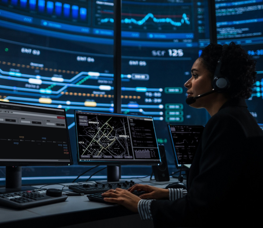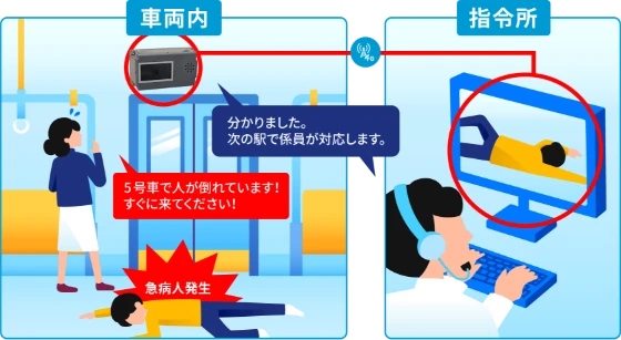 - ② 指令所で列車内のカメラ映像をリアルタイムで確認し、現状を把握。
