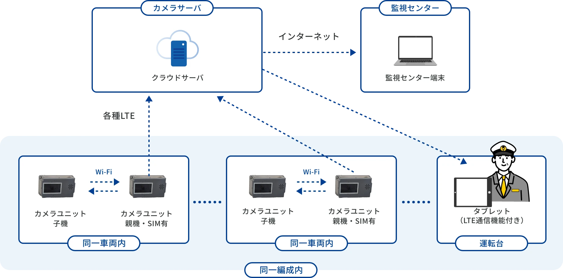 運転台から車両内のリアルタイム視聴を実現